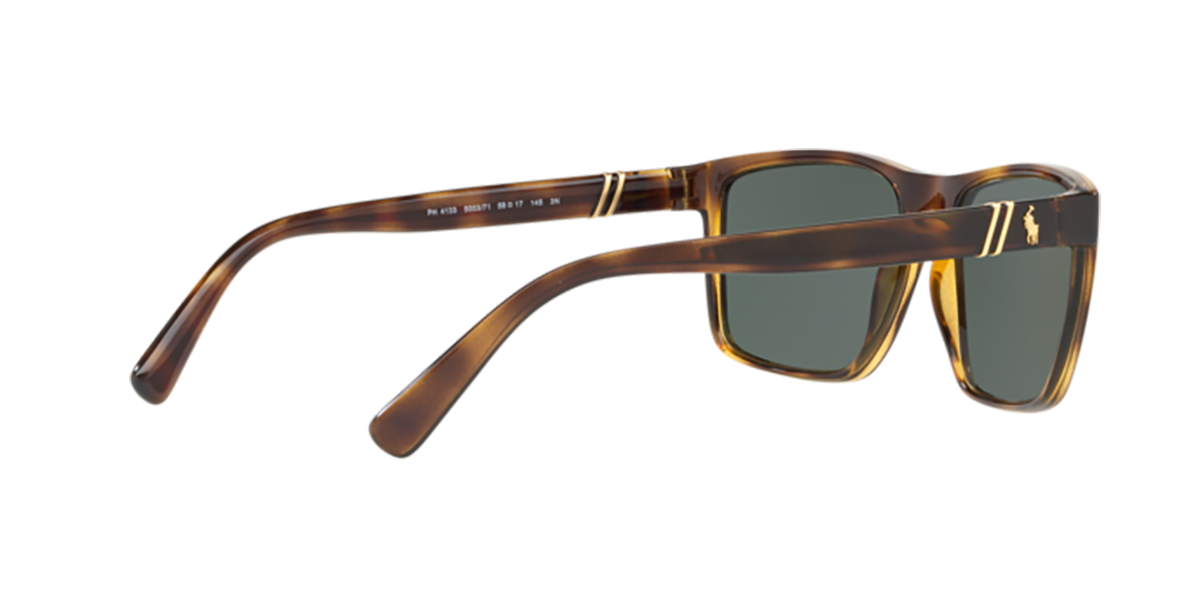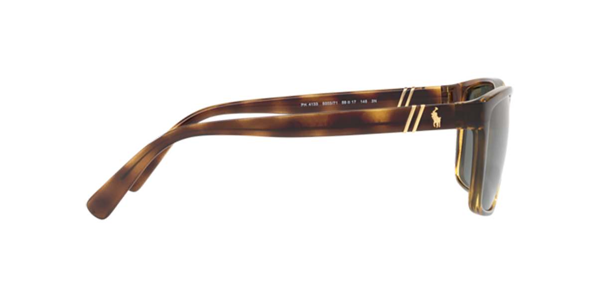Τα Polo Ralph Lauren PH 4133 500371 είναι premium γυαλιά ηλίου με κλασική ορθογώνια γραμμή και διαφανή σκελετό σε σκούρη ταρταρούγα (dark Havana) που ενσωματώνουν την ποιότητα και την κομψότητα του διάσημου αμερικανικού brand. Ο πράσινος φακός υψηλής ποιότητας εξασφαλίζει άνετη και ξεκούραστη όραση κάτω από έντονο ήλιο, ενώ η 100% UV προστασία UV 400 προστατεύει τα μάτια από τις βλαβερές ακτίνες UVA και UVB.