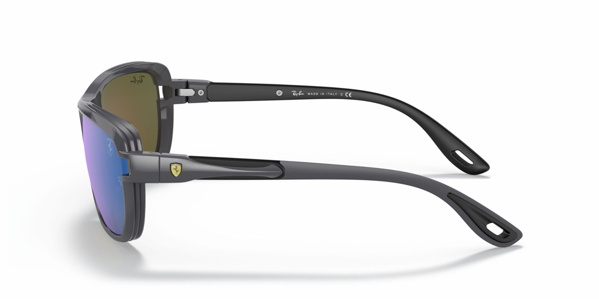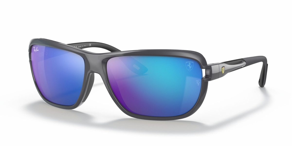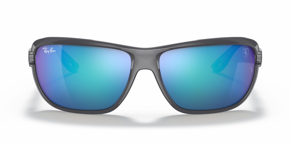Μοντέλο: RB 4365-M (μέλος της συλλογής Ray‑Ban Scuderia Ferrari) — χρωματικός κωδικός F624/55 (σκελετός σε μαύρο χρώμα με μπλε-καθρέφτη φακού)