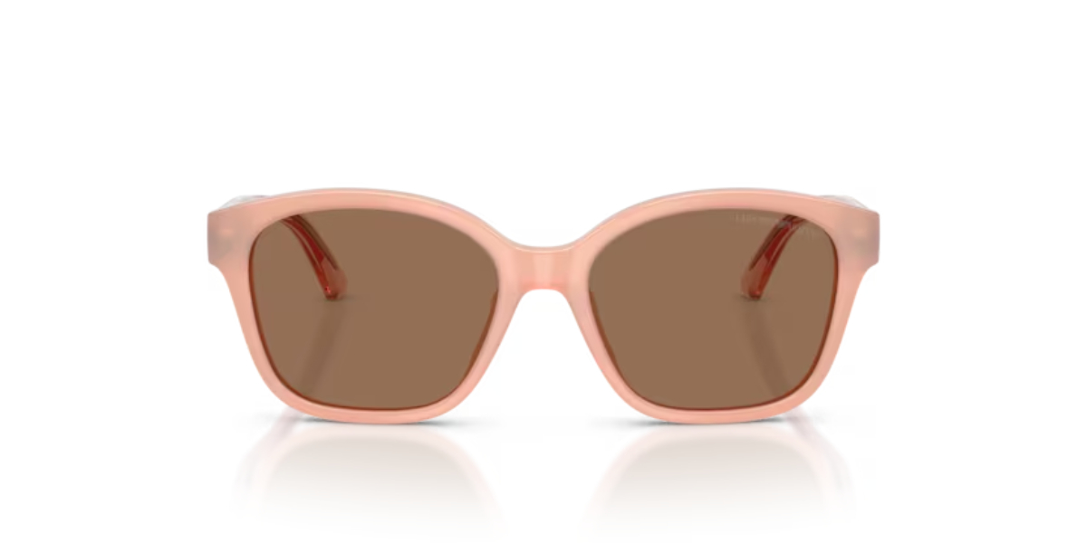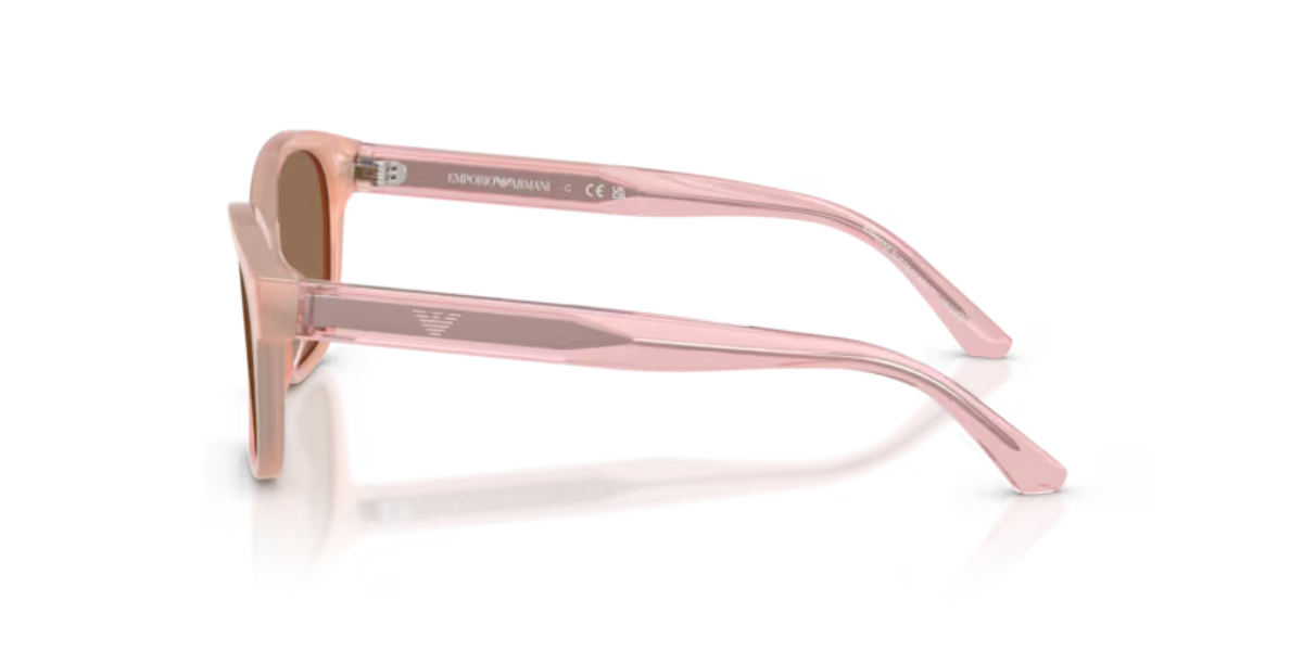 Ο διάφανος ροζ (shiny opal pink) σκελετός δίνει μια μοντέρνα, χαρούμενη αισθητική που ταιριάζει απόλυτα σε παιδικά looks, ενώ παραμένει διακριτικά premium χάρη στην υπογραφή της Emporio Armani.